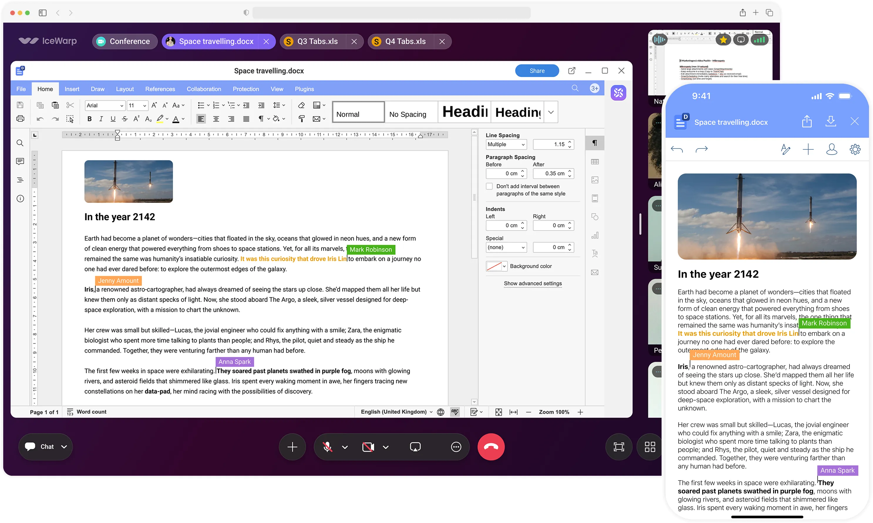 Arbeiten Sie mit Ihrem Team im selben Dokument. Tauschen Sie sich direkt aus und geben Sie Feedback über den integrierten Chat-Bereich.